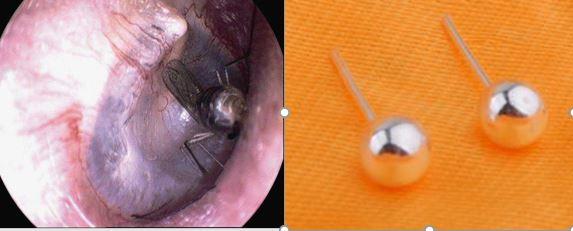 还有一次是一位年轻的姑娘,也是夜诊,说睡觉时感觉左边耳道有点不舒服,听声音也没什么异常,就是感觉好像不舒服就来瞧瞧。等我拿起电耳镜一瞧,一个耳钉就那么明晃晃的在那耳道里躺着。我说你外耳道里怎么有个耳钉啊,她说:“”啊,原来耳钉在这啊,我前几天起床的时候就发现不见了个耳钉,床上床下找遍了也没找着,还以为丢了”哈哈,这菇凉神经也够大条了,掉了东西到耳朵里几天才有感觉。