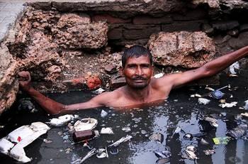 这位老兄是印度一名下水道清理工,清理下水道是直接跳下去清理的,我隔着屏幕都感觉臭味指数爆棚了。