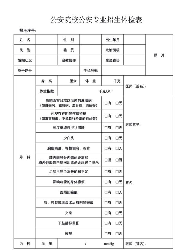 9.身心健康,符合公安院校公安专业招生体检和体能测评标准。
