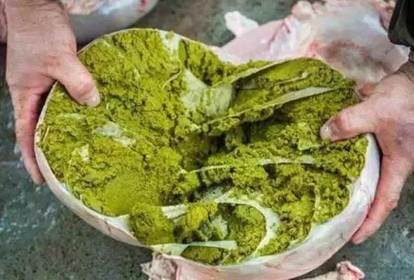 牛瘪汤是黔东南地区独特的一种食物,它是用牛胃及小肠里未完全消化的食物拿出来,挤出其中的液体,加入牛胆汁及佐料,煮沸后将液体表面的泡沫过滤食用。
