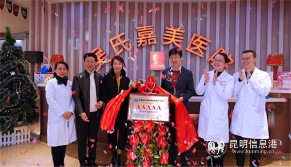 2019年初之际 ,“中国整形美容协会2018年医疗美容机构评价工作总结会议”在北京国际会议中心盛大召开,中国整形美容协会正式为5A、4A、3A等级的医疗美容机构颁发证书及牌匾,级别等同于“三级甲等”医院的中国5A级医疗美容机构权威认证出炉。昆明吴氏嘉美整形美容医院在全国众多省市诸多申报参评医美机构中脱颖而出,获评5A医疗美容机构。吴氏嘉美美容医院院长吴承道先生赴京参加会议并正式接受了“中国医疗美容机构评价等级AAAAA荣誉”授牌。