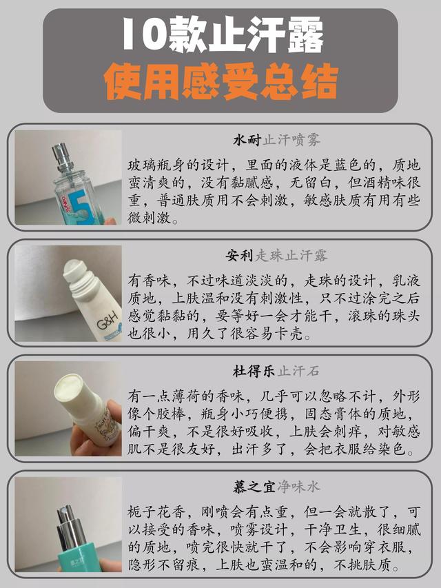 四、真人实测环节为了更加客观、详尽地展示止汗露真实效果,我将各止汗露的上身使用感受进行了总结