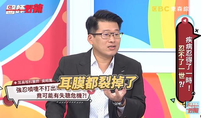 吴昭宽医师转述,高中弟与网友见面时,想打喷嚏的感觉不断涌现,忍都忍不住,只好用手将鼻子和嘴巴捏住强忍不打,没想到下一秒听到「啵」一声,接着耳朵一阵剧痛,感觉右耳有气流从耳道里冲出,随后开始出现「水流声」。一旁女网友惊觉不对,因为她说话时对方一点反应都没有,进一步询问高中弟才透露,「我刚刚打喷嚏,打完后我的世界都空白的,耳朵痛得要死,我也听不到你的声音。」
